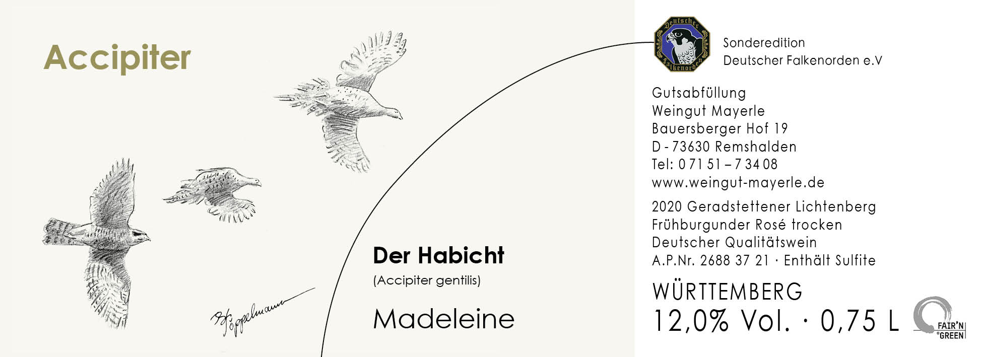 Der Frühburgunder ist wie unser Habicht ein Allrounder. Eigentlich eine Rotweintraube wechselt er die Farbe zwischen Weißwein und Rotwein. Gerade deswegen ein konsequenter Geschmack, der keinen Interpretionsspielraum zulässt.